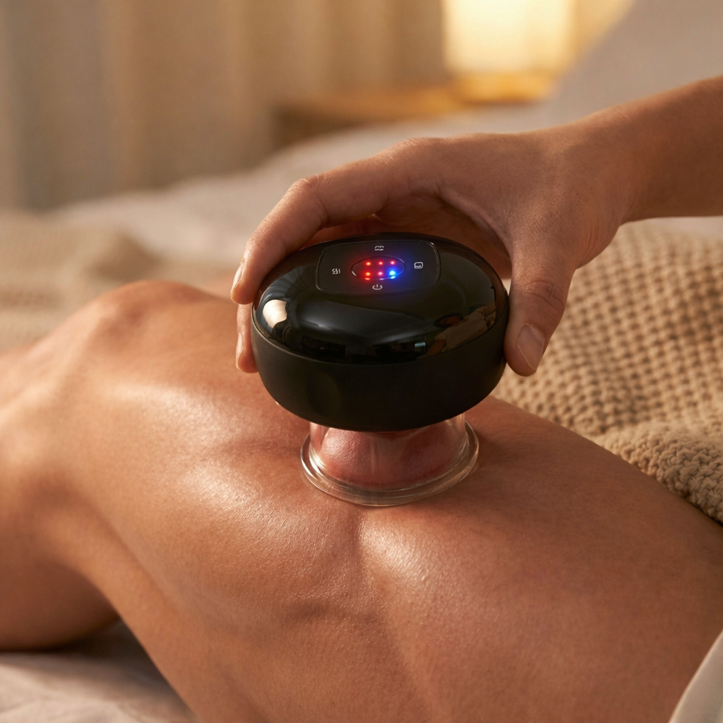 Dynamic vacuum suction combined with targeted heat increases local blood flow and lymphatic drainage. Result: faster muscle regeneration, shorter downtime, higher training frequency.